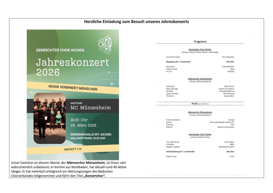12. April 2026, Haus des Gastes Höchenschwand beim Ehrungskonzert des Chorverbandes Hochrhein.